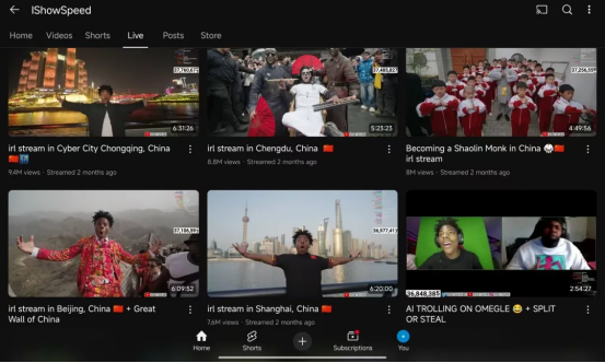 Youtube网红“甲亢哥”重庆行直播观看量最终超900万