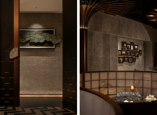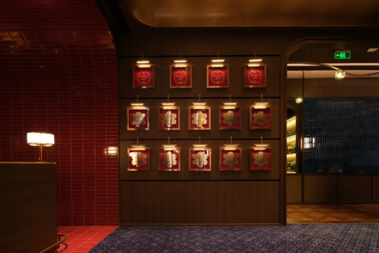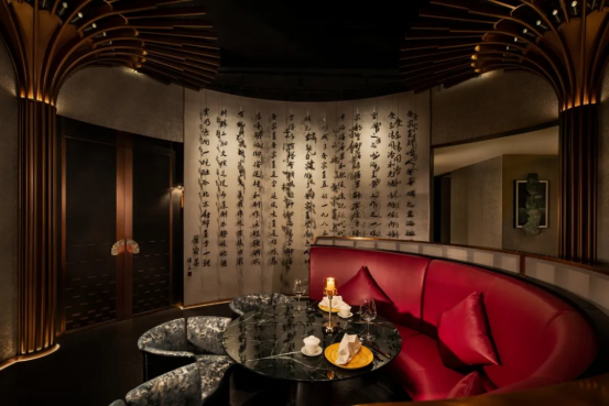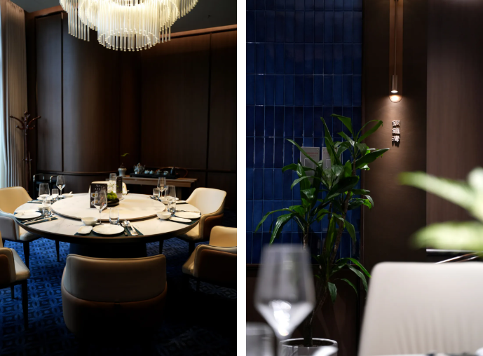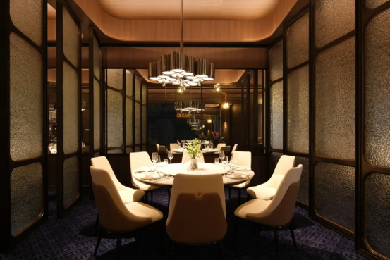 重庆大都会店则是富豪酒家布局西南的首店。推门而入,映入眼帘的是哑金色调的中式装修,挑高的空间里,一整面墙的15颗米其林星星闪着金光,透着老钱风的低调奢华。穿着缎面旗袍的侍应生微笑引座,轻声细语间竟带点港剧腔调,瞬间梦回《溏心风暴》豪门夜宴。