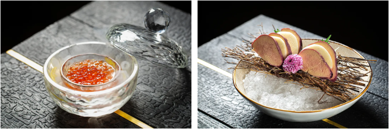 整个用餐过程可长达 3小时,包含 9大类菜品,其特色美食包括来自新西兰、美国、法国的生蚝,俄罗斯的甜虾以及高温炉热盘澳洲牛排等,且部分前菜和主菜还融合了重庆本地食材,展现了独特的创意和风味。