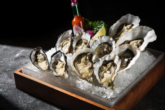 「法国吉拉多生蚝」卧在冰岩上,淋柠檬汁时蚝肉微微颤抖。先空口吸溜:前调是榛子果香,中调泛起白葡萄酒般的清冽,尾韵竟有乳酪回甘。勺背轻压西伯利亚「卡露伽鲟鱼子酱」铺满蚝肉,海潮咸鲜裹着奶油感在舌尖放烟花,罪恶又上瘾。「新西兰莫娜蓝珍珠生蚝」的外壳呈漂亮的波浪形状,颜色为蓝色,入口时带有清新的海盐咸味,随后能感受到柔滑甜美爽脆,余味中可能还有股甜甜的奶香味。其肉质饱满,口感细腻,不腥,适合喜欢细腻口感生蚝的食客。